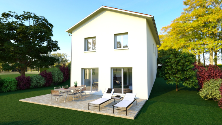 Cette maison offre une surface habitable de 100m² sur un terrain de 492m² complétée par un garage de 17m².